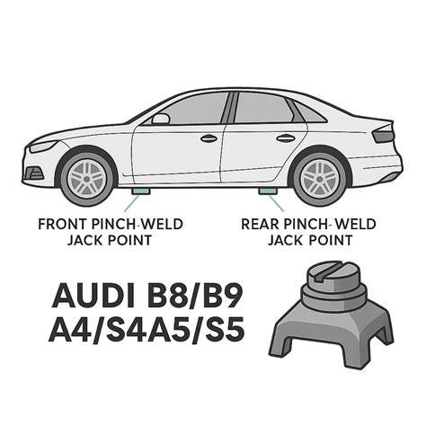 Audi A4 Jack Points. Jacking up your 2009 audi a4 quattro can be dangerous if done incorrectly. There should be four total;